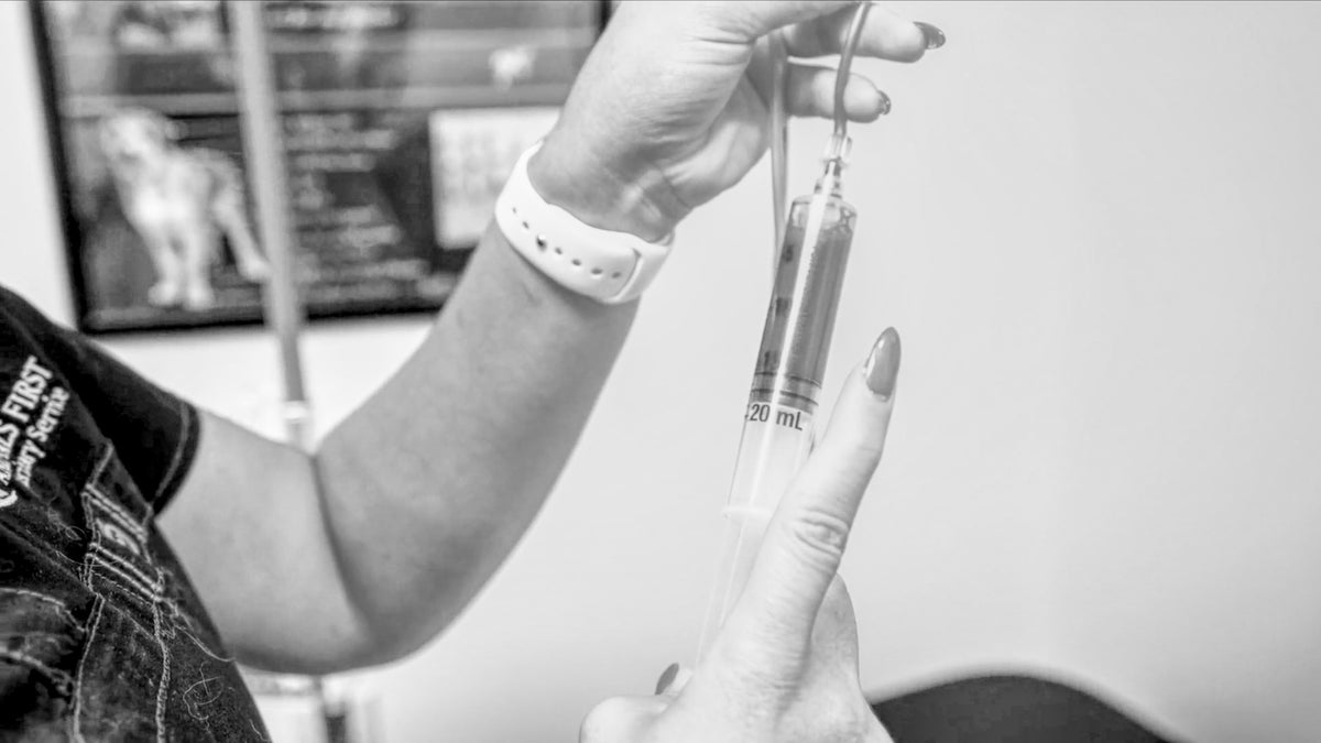 This entire process will take about 30 minutes depending on the size of the animal and the amount of blood that we need to treat.