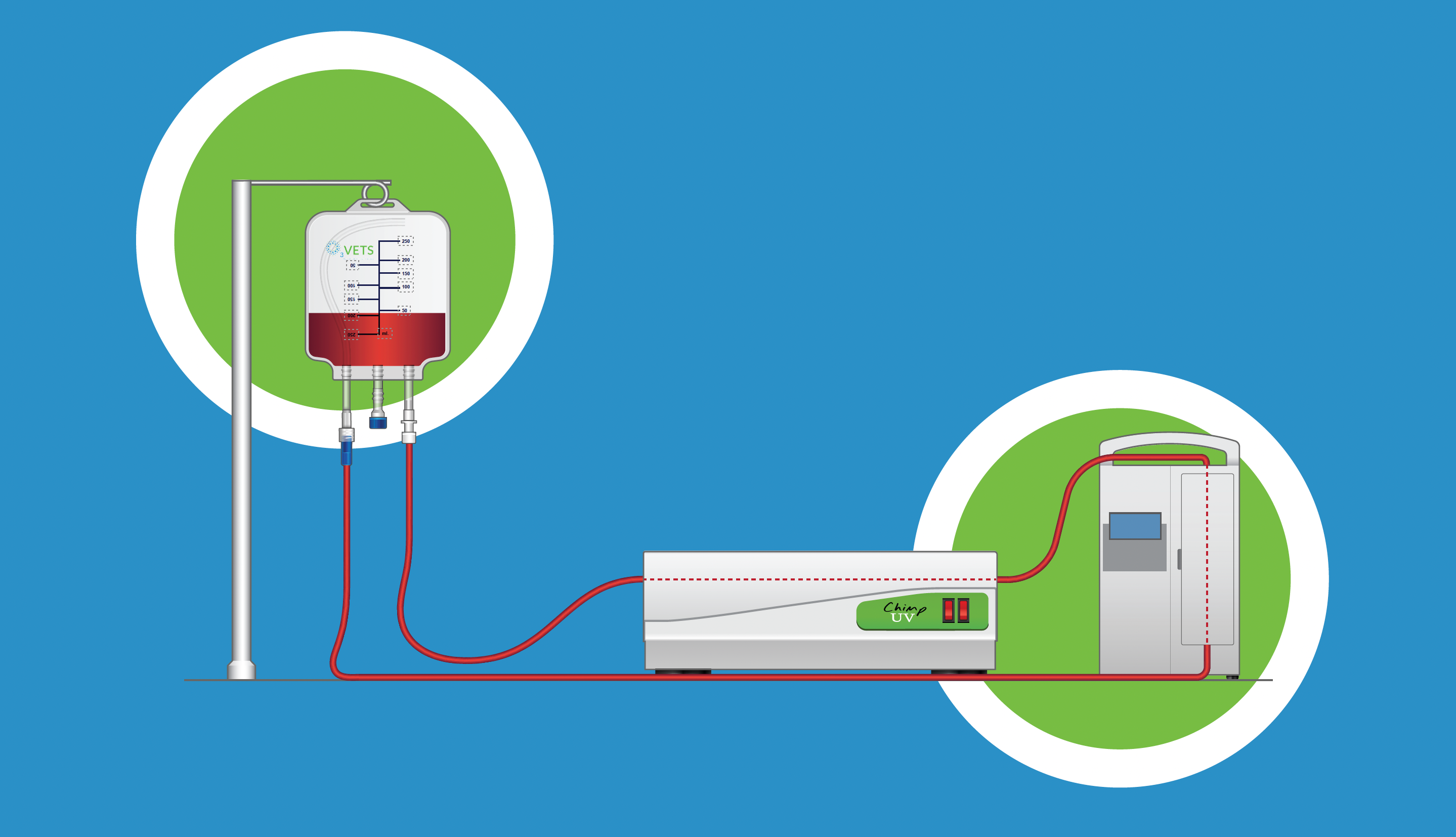 O3UV consists of withdrawing blood, diluting it with saline (4:1), infusing ozone gas into that blood/saline mixture and then exposing it to ultraviolet light in our Chimp UV machine.