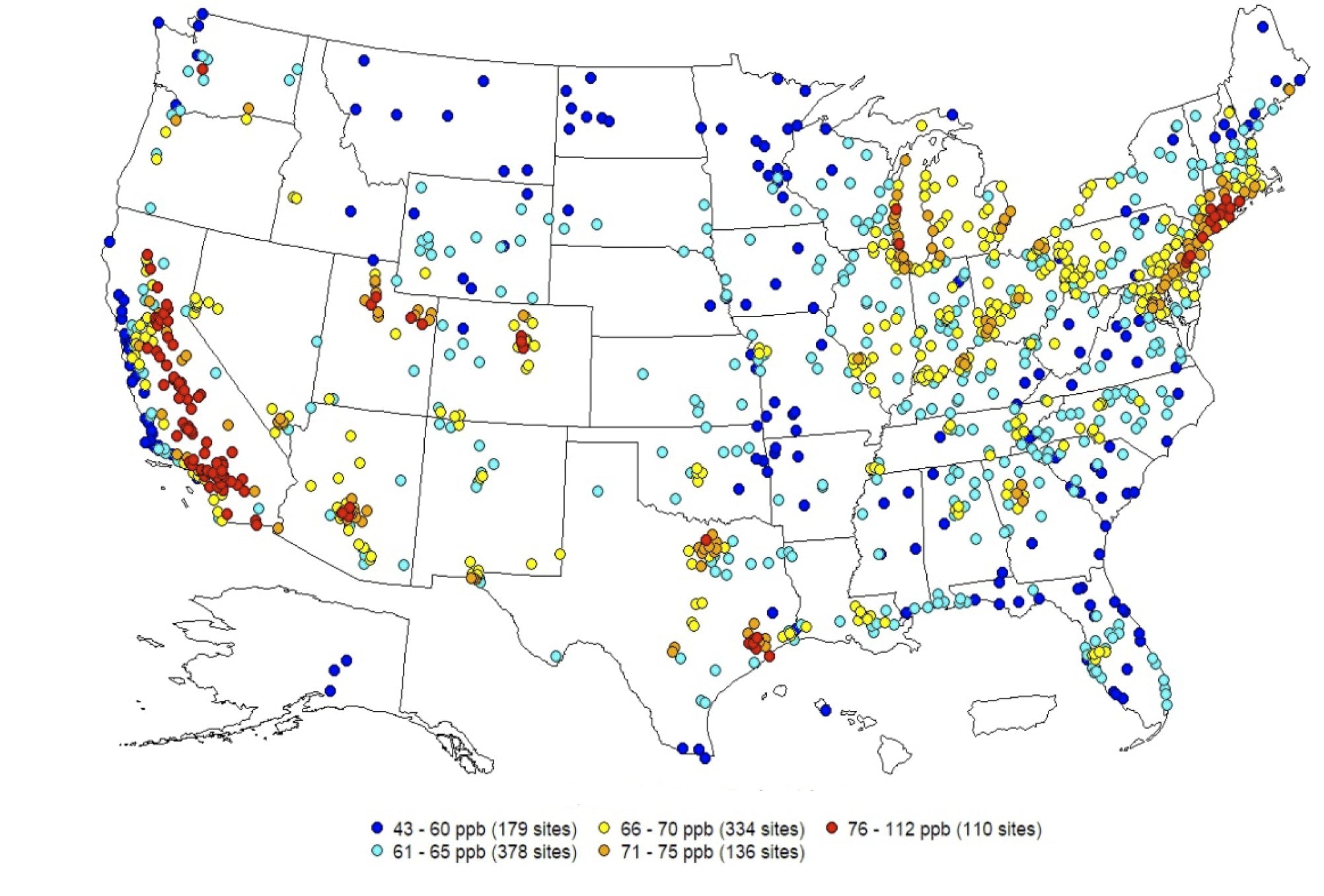The Environmental Protection Agency is tasked with protecting our health and our environment which really go hand-in-hand. I found it interesting that there are 1,400 monitoring stations throughout the U.S. that report the levels of ozone every hour. They report that about ⅓ of the entire population lives in areas that are above the recommended level of 0.075 ppm with the highest levels being in California, Texas and the Northeast Corridor.